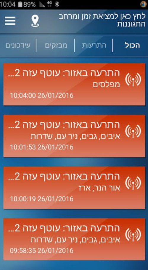 החל מחודש מאי הקרוב ישדרג פיקוד העורף את מערך ההתרעה הארצי מ-260 אזורי התרעה ל-1800 אזורים בהשקעה של מאות מיליוני שקלים - כך נודע לממון. יותר ויותר מפתחים ישראליים מוציאים אפליקציות המתאימות לזמננו אנו מבצע צוק איתן הדורש מאיתנו להישאר עירניים ולהיות קשובים להוראות פיקוד העורף. באפליקציה ניתן לקבל התרעות לפי מיקום נוכחי הגדרת יישובים ומרחבים שלמים.